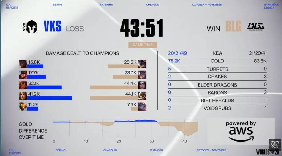 BLG也一样,被VKS打满头大汗,第二把鏖战43分钟,最后靠Bin极限偷家,才赢下这场生死战,从赛场表现来看,这两队掉到1-2是真的不冤,因为LTA赛区的两支队伍,在16支参赛队伍里,实力都是排在倒数的,本应轻取的对局,却打得非常焦灼,这完全不是中韩队伍,应该有的表现。