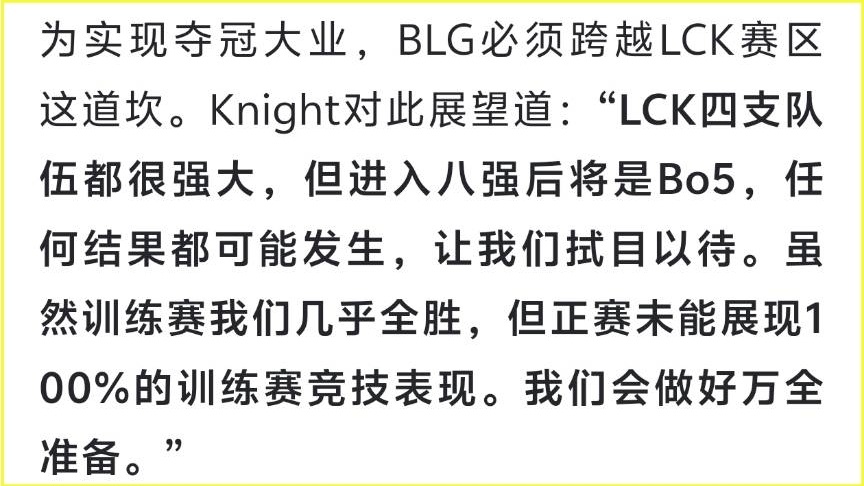 BLG赢比赛被观众喝倒彩!Knight自曝轻敌原因:训练赛几乎全胜