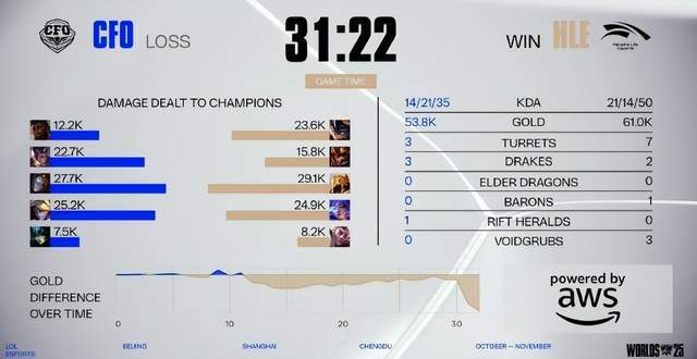 然后就是本届S15最强全华班CFP对战FLY的比赛了,CFO今年可以说是黑马了,甚至在之前的瑞士轮击败了T1,双C选手HONGQ和DOGGO都打出了不俗的表现。