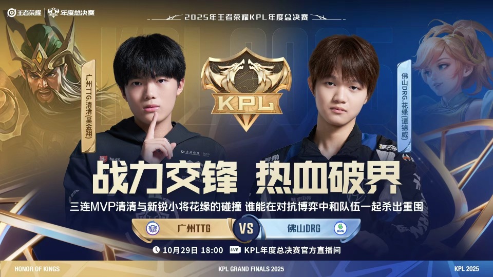 休整了几天时间,2025年KPL年度总决赛淘汰赛第三轮的赛场继续进行!来到了第三轮的比赛,每一场都非常重要了。如果能再前进一步,不仅可以争夺冠军,奖金也能翻倍。第三轮第一场,是TTG和DRG的“广佛大战”!