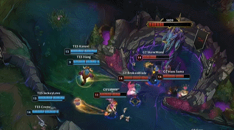 个人认为这局比赛G2是以一个非常奇怪的阵容打出了完美的效果,开局下路的关键对拼是撕开了TES的防线,JKL被逼出闪现后蝴蝶效应开始启动,G2的阵容得以完美发挥,不断地针对下路直接打崩JKL。
