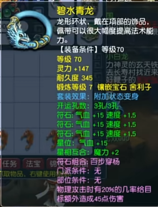 70级的高伤武器,伤害+300,命中+3344,体质+13,切造型切的非专用武器!满伤害也是齐天大圣首屈一指的武器了!