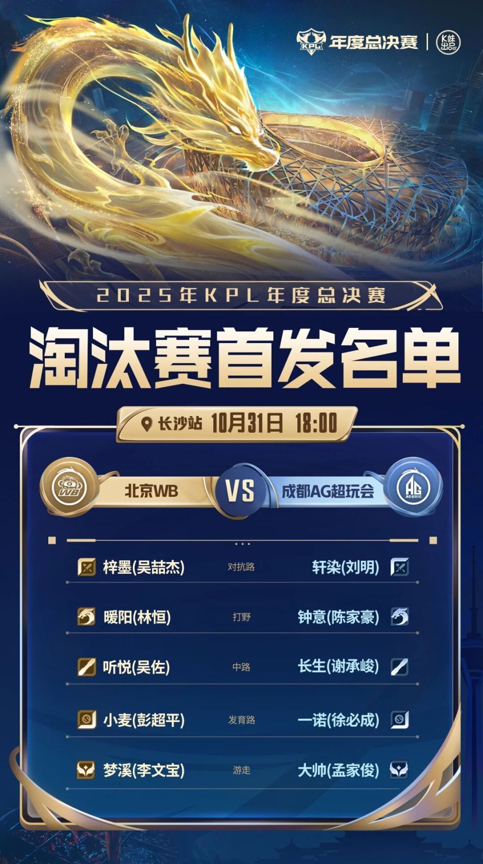 年总淘汰赛第十一日|北京WBvs成都AG超玩会 谁能夺得通往决赛的门票?|2025KPL年度总决赛·决赛 门票12秒售罄!