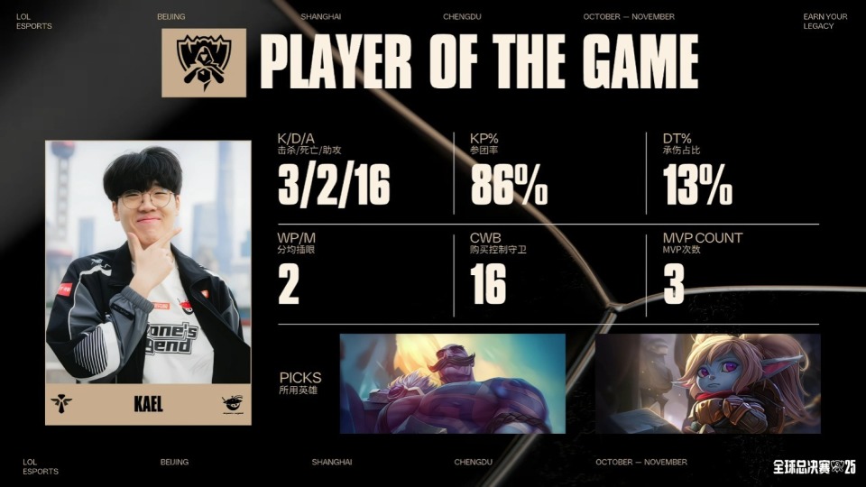 中期20分钟T1主动打厄塔汗,Tarzan猴子想抢但是自己被击杀,T1拿下厄塔汗,不过AL打出1换2。23分钟kael波比野区开团,但是Doran兰博完美大招,圣枪哥安蓓萨开到Faker冰鸟,Faker闪现规避,反而是T1反打追击团灭AL。25分钟双方争夺小龙,Tarzan猴子开团配合shanks加里奥完美进场击杀T1两人,随后AL想去打大龙,Faker冰鸟TP到脸上被秒,AL追击团灭T1后,拿下第一条大龙。最终后期31分钟AL在高地开到Faker冰鸟,团灭T1后,拿下第二局的胜利。MVP给到Kael波比。