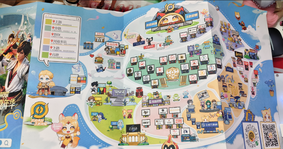 嘉年华现场也非常符合游戏设定,被规划为了“上路”“中路”“野区”“河道龙坑”“下路”“高地”几个区域,宛若峡谷地图被拉到现实来: