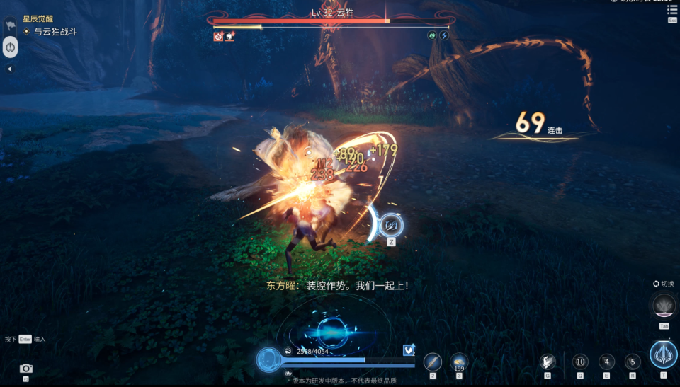 让我印象最深的是与BOSS「云狌」的战斗,这是一个类似“猩猩”的BOSS,能近战能远程,还有可使场地燃烧的AOE技能,半血后还会进入二阶段,改变出招模式,难度不低。