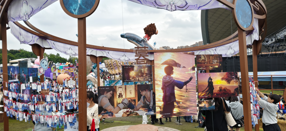 在嘉年华的每个角落,你都能感受到玩家对这款游戏的热爱。cos成游戏英雄的玩家们成群结队,手持集章卡在各个展区间穿梭。不少玩家,把对生活的美好祝愿,挂在会场的一个独特的展示亭边,而亭子里都是玩家们在《王者荣耀世界》中拍摄的照片,非常浪漫。