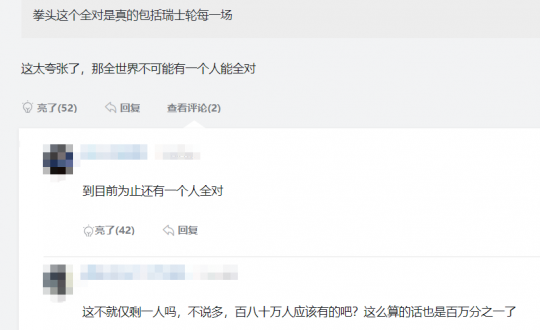 这让很多玩家都觉得这个哥们可能是超越过来的,因为正常人压根无法在今年如此混乱的瑞士轮比赛中,精准预言出这么多爆冷比赛的胜负关系:“瑞士轮全对,这人是不是穿越的?太离谱了”,“这个b预测t1输CFO,又预测t1夺冠,乱填的吧”,“唯一合理的解释是,这个人是一个认为t1会慢热的t1粉,要不能选出cfo赢t1和t1一路夺冠是真无敌了。当然我宁可相信他是让自家猫选的”……