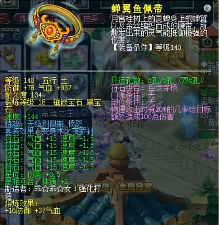140级的防御+94,气血+374的愤怒+无级别的18段的腰带!