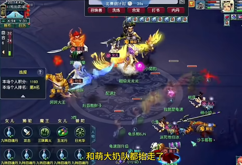 可惜因为队长号没有站起来,倒地一个单位,对面赖胖子全员站立,直接判定赖胖子获胜。弹幕全都是你连一个赖胖子这个二线队伍都打不过,太菜了,后来操作女儿村的解释了原因,他是龟速拉的自己,怕狮驼岭被点死,自己又拉了一手狮驼岭。