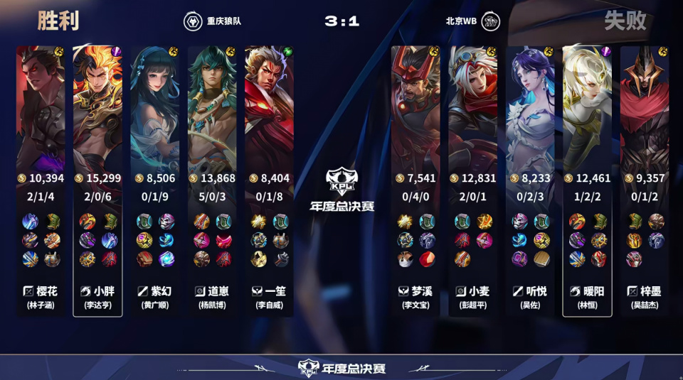 狼队4-2战胜WB,今年第一次赢WB(不算BO1加赛)就赢了个大的。在小胖状态一般的情况下其他人都能兜底,底蕴还是很强。尤其是道崽敢这么放狠话,也是来自于他的表现确实很出色,六局比赛只有第五局被切死过,沉淀了一个赛季,已经成为现在狼队的大腿了。