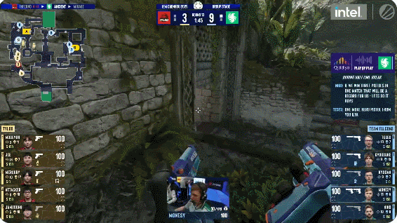 图一Ancient,MOUZ在0-2开局后全员爆发,打出一波9-1铁血防守。换边MOUZ再下手枪局拿到10分,尽管经济局jcobb一把USP在遗迹3杀翻盘,但MOUZ立即一波B再翻回来,乘势先下一城。
