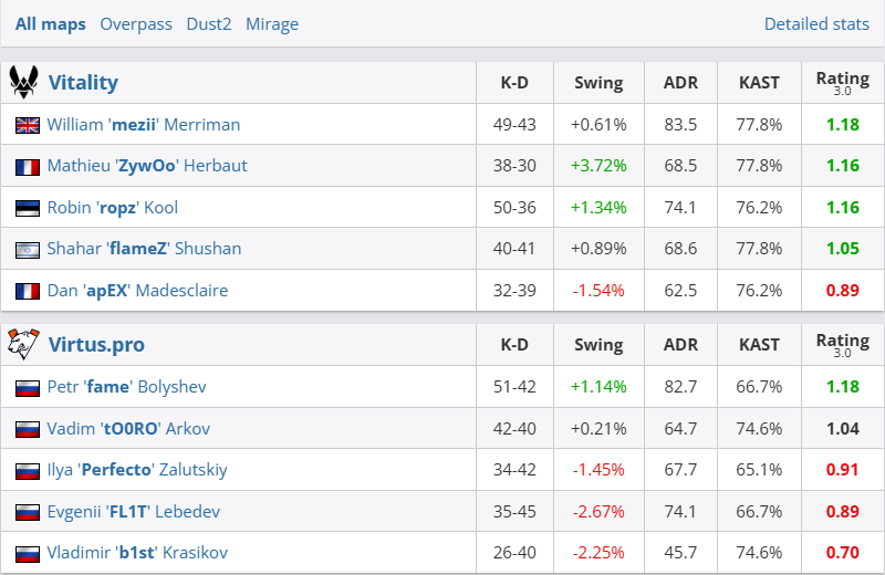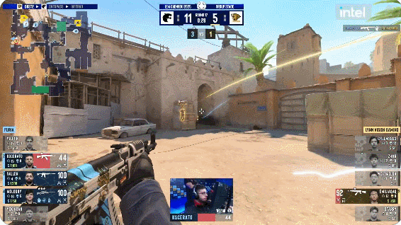 图二Dust2上tO0RO状态爆炸半场15杀(在大黄蜂面前)鹤立鸡群,VP连续双中路前摸匪家,半场守下7分。换边VP再拿手枪局将优势扩大至10-5,不过长枪局ropz在B大狙接连立功,而ZywOo也大狙回防拿下关键击杀,Vitality以双狙战术打出一波8-1铁血防守完成逆转。