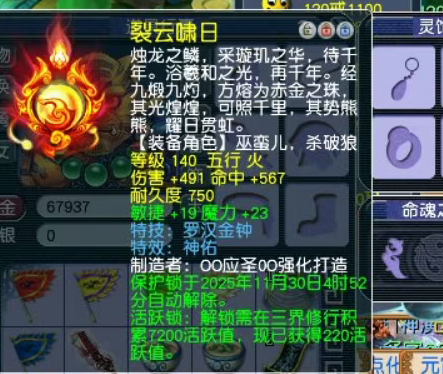 单从属性来看,这件武器非常适合地府、方寸、女儿村等门派的帮派联赛顶尖玩家,预计在市场上能轻松达到五位数的报价。