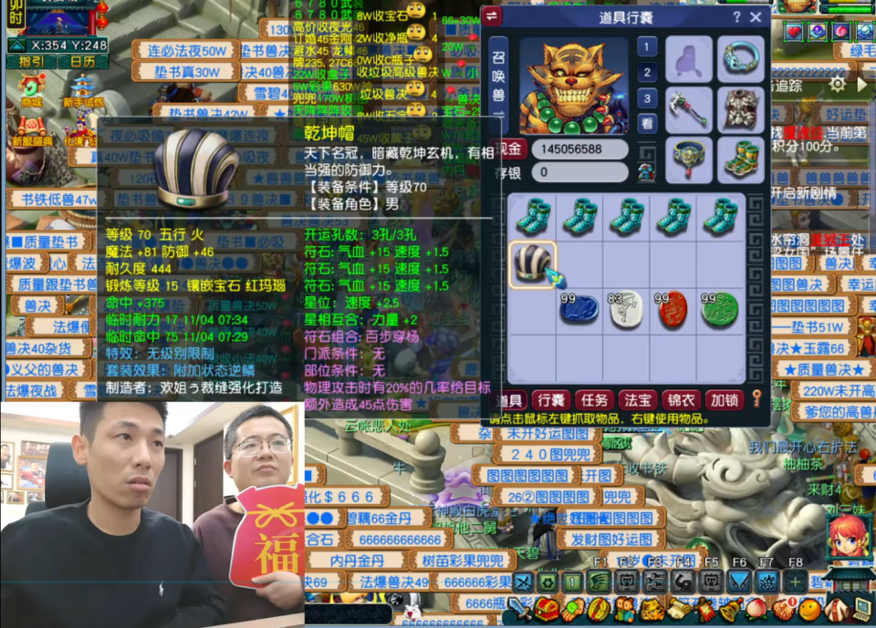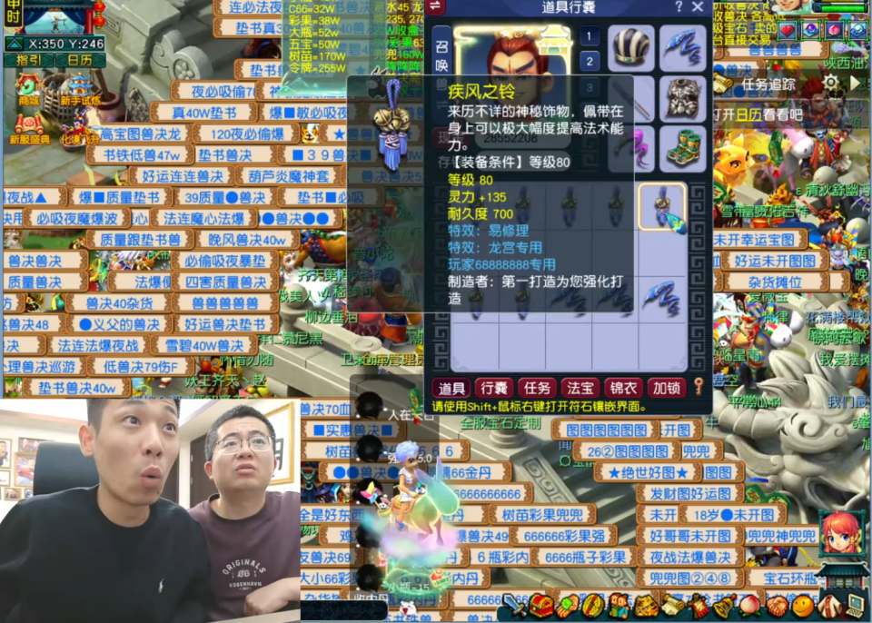 最后,宝哥还想为“齐天第一无级别头”点化出变身套。在用掉3枚附魔宝珠仍未成功后,他临时加价收购,甚至一度将价格提到5500元,却依然没能收到。当有商人趁机开价8500元时,宝哥果断收手。毕竟,再有钱,也不能破坏市场。