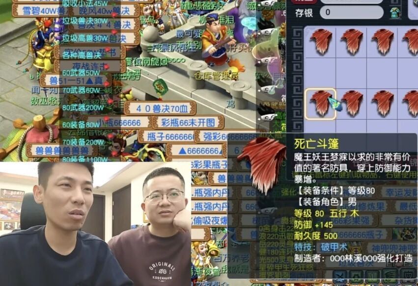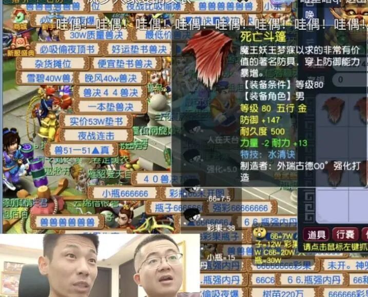 昨天最厉害的应该是这件80级的衣服,防御+165,敏捷+15,体质+13,特技是碎甲术,这个特技直接给团队的地府用正好,因为宝哥的狮驼岭是群伤的门派,带碎甲术这种全体减少防御的特技也很好,现在团队的地府是童话哥在搞,宝哥打算这个衣服卖给童话哥150万,哈哈,大家觉得这个衣服价值多少呢(未鉴定基本上1500-1600元附近一件)?