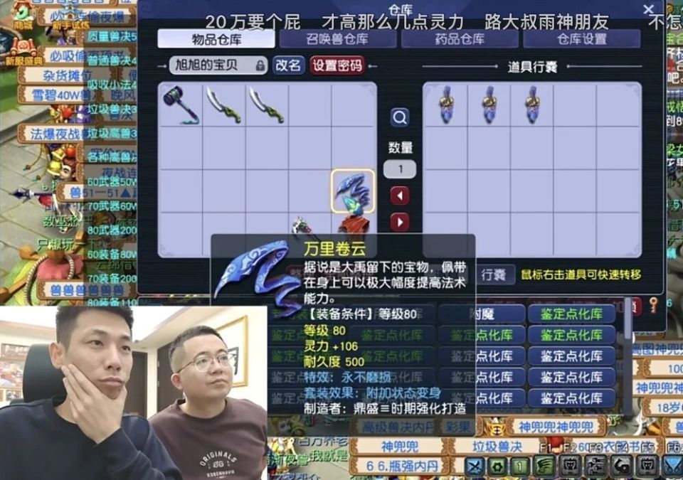 到最后所有的点化都鉴定完了,也没有高属性的变身套,好在路大叔自己鉴定出了一个人造的变身项链,就送给宝哥了,初灵+106,特效是永不磨损,套装是变身,这样子就还差一件鞋子就基本上毕业了!没想到鉴定这么多还是没出,最终宝哥还是靠朋友的馈赠完成!