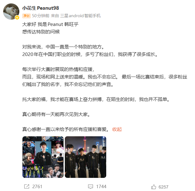 小花生专门发文感谢中国粉丝:很多粉丝们喊出了我的名字,我不会忘记他们的声音