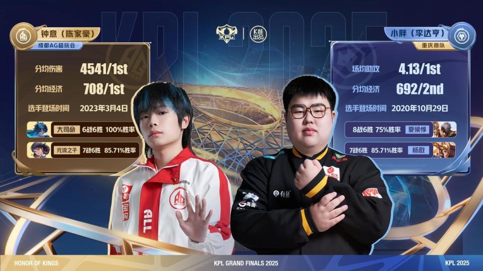 时至今日,小胖和钟意在总决赛相遇,下面就带来钟意、小胖两名选手的数据对比,让我们提前看看,两名选手在本次年总有着怎样的数据表现吧。