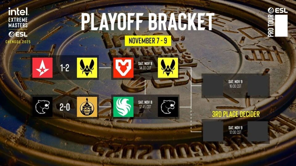 2025年11月3日-9日,IEM成都在中国举行。FURIA、Vitality、Falcons、MGLZ、NAVI、MOUZ、Spirit、TYLOO、LVG等16支战队争夺100万美元总奖金及冠军荣誉,同时本站赛事为ESL大满贯系列赛事之一。
