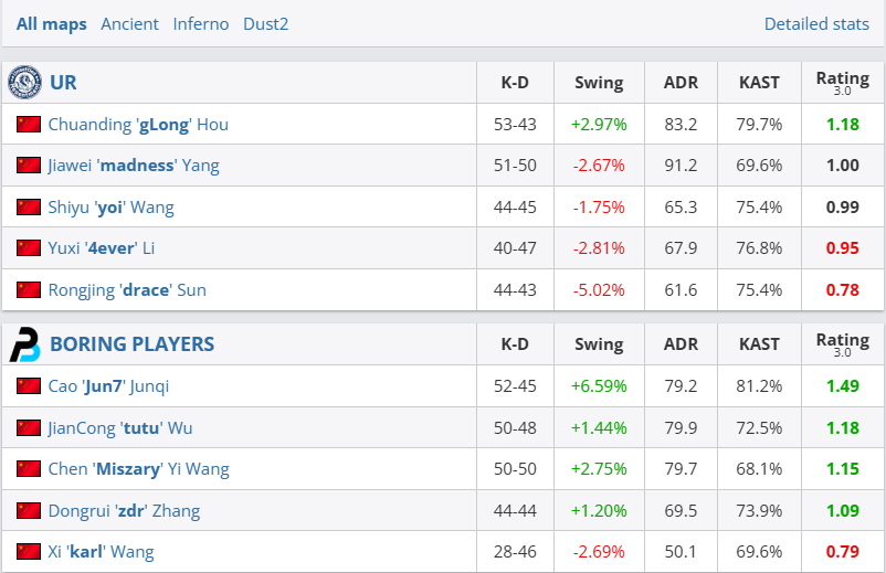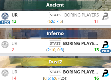 决胜图Dust2,UR依靠madness的个人爆发下打出5-0开局,长枪局Miszary也是各种乱杀连扳6局,半场双方握手言和。换边BP拿下手枪局,Jun7、tutu、Miszary火力全开,以一波6-2进攻潮取得赛点;不过UR也连追4分进入加时。加时赛BP早早拿下赛点,即便UR连追两分,终局BP完成4V3回防终结比赛。