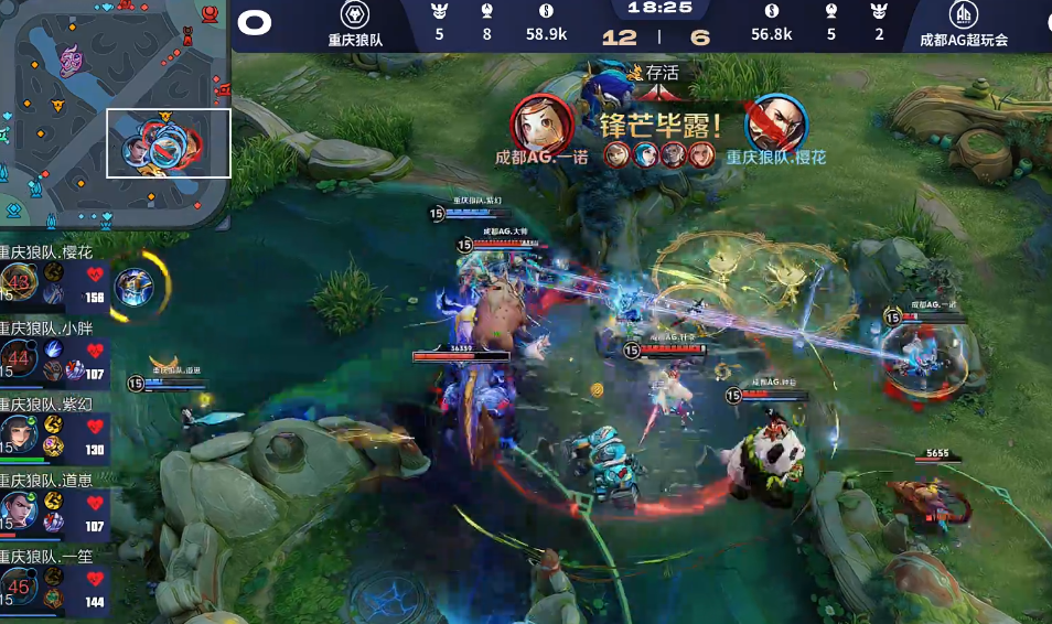 突然镜头一放大,狼队的人被击杀了,AG打出来了,守住了之后直接拿下所有资源开始了反攻。