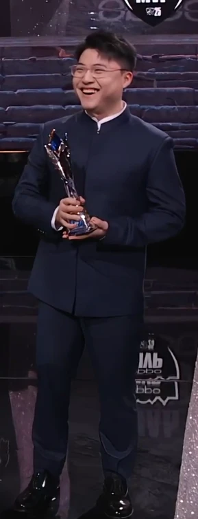 UZI中山装亮相决赛给T1颁奖,太帅了,Faker一直盯着他看