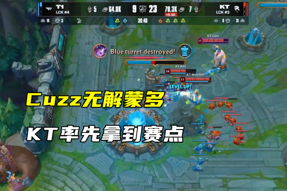 而KT这边在拿到炼金龙魂之后,即使BDD的梅尔被围攻拿下,挖掘机也能无限游龙,T1根本处理不了,就这样,双方比分打平。第三局,这一局KT的蒙多可谓是无解,团战一个人追着两个人Q,根本没人打得死他。其次,Perfect的奎桑提也是熟练度拉满,团战一人单防打野和AD不落下风,有这两个肉坦在,T1的团战吃了不小的亏,最终T1也是遗憾落败,KT率先拿到赛点。