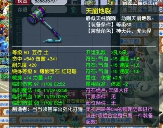 80级的锤子,命中+540,伤害+341,敏捷+14,力量+12!