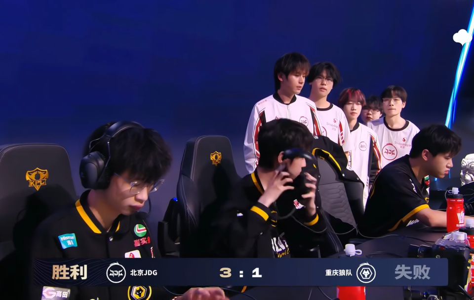 要知道,这已经不是狼队第一次在握手环节坐着了。今年10月10日的KPL夏季赛,狼队1比3输给北京JDG的比赛过后的握手环节,他们就坐在椅子上迟迟不起身,不过当时无畏率领的JDG选手们并没有直接上去握手,而是等到狼队的选手起身之后才去握手。