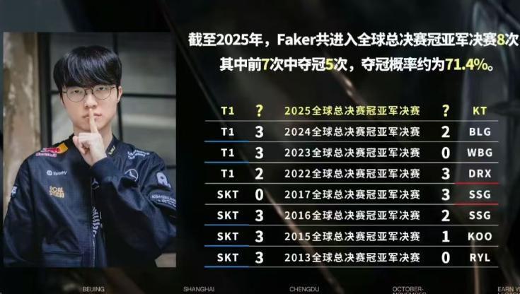 对于今年的S15世界赛,相信很多观众都在期待LPL三支战队至少有一支能够进入决赛的舞台,但是BLG早早倒在了十六强,AL没能跨过T1,TES也是被T1斩落马下。不得不说,世界赛的T1,永远都是在持续进化中,从四号种子,再到如今的冠军。T1战队的成员除了Faker,都是换了一批又一批。不得不说,这次T1对阵KT的比赛中,让二追三的剧本实在是太好看了。就在大家都以为Faker没能获得三连冠成就的时候,没想到T1展现出来的韧性,是值得任何战队学习的。而T1最终,也是3:2在决胜局中,淘汰了KT,拿到了前无古人后无来者的三连冠,队史6个冠军。