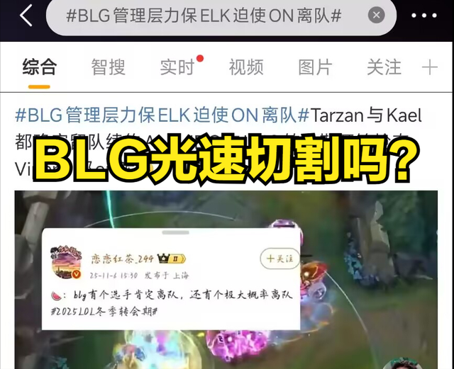 BLG内部决裂大瓜登上热搜!大量业内人士爆料,ELK和ON谁会离队?