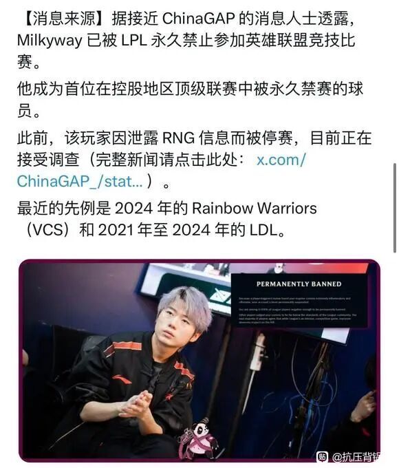外网爆料LPL最佳新秀遭永久禁赛!菠菜又炒粉,真的没救了