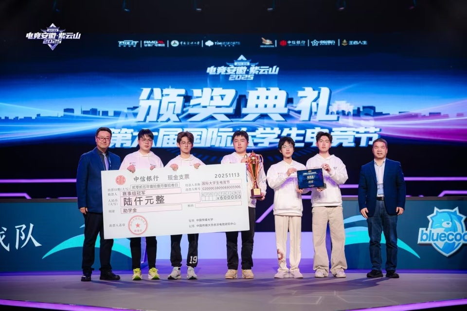 (中间五位:第六届国际大学生电竞节冠军战队;