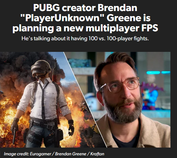 吃鸡神作《绝地求生》生父、Brendan Greene日前接受媒体采访,透露了自己的近期计划,表示正计划打造100VS100大规模FPS新游。
