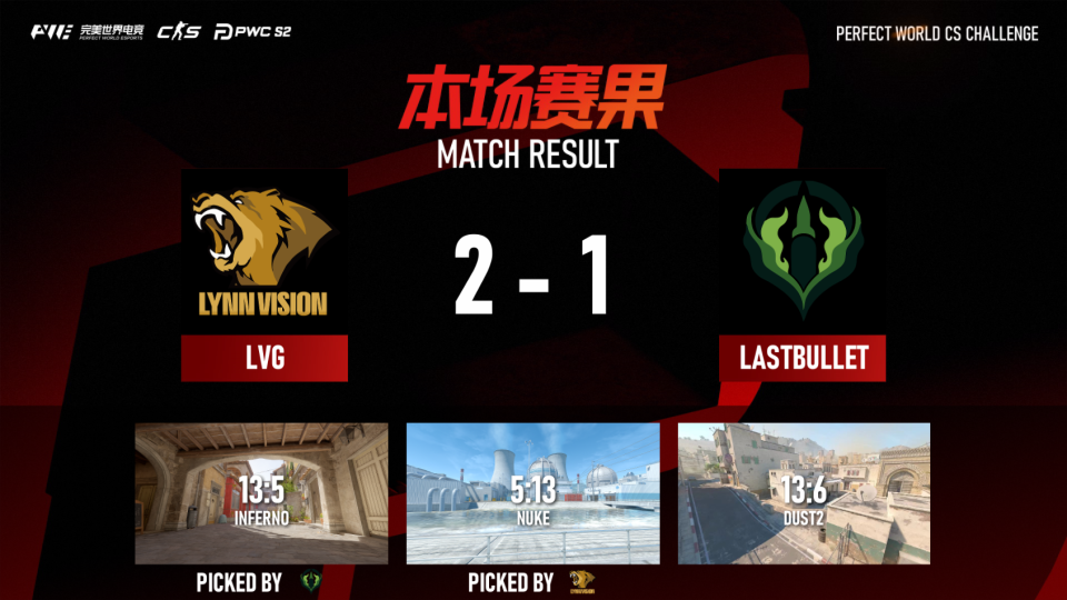 决胜图Dust2,LB虽战术简单但枪法凶悍,而LVG则以小配合还以颜色。双方来回拉锯,从2平、3平打到半场6平。换边LVG一波B再拿手枪局,西瓜突破一马当先,三叶在A平台57击杀后火中切狙狙掉对手单局3杀,单图狂轰25个人头,LVG进攻势如破竹连下7局终结比赛。