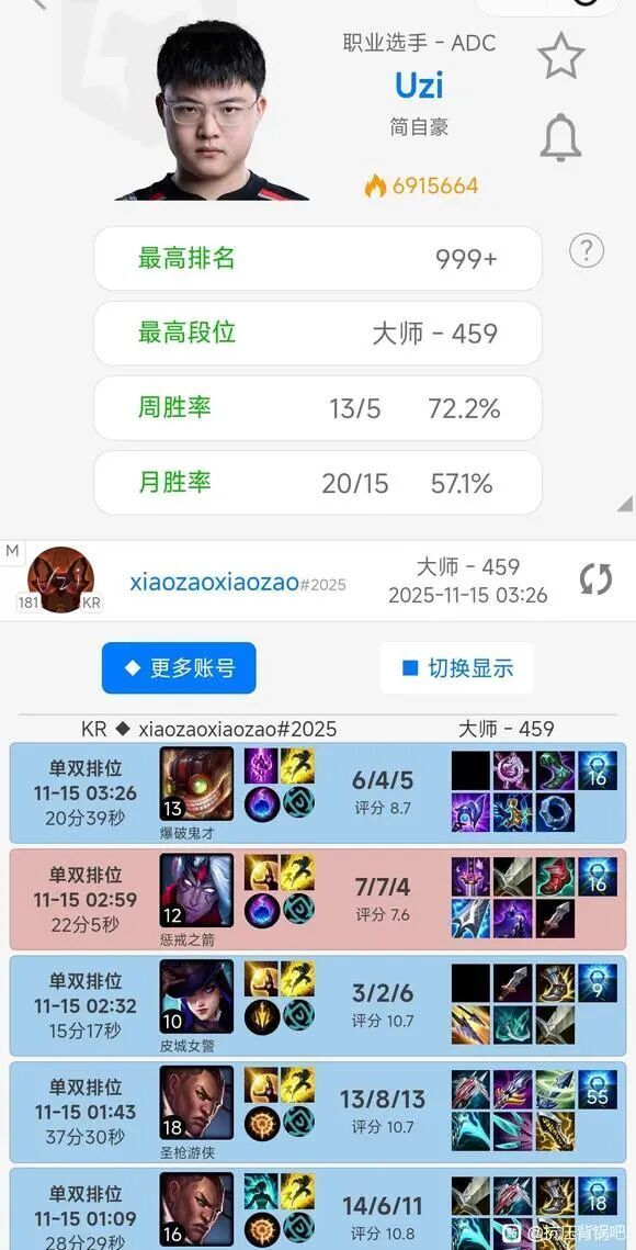 网瘾还是想复出?Uzi疯狂打排位到凌晨,练习炸弹人和韦鲁斯等英雄