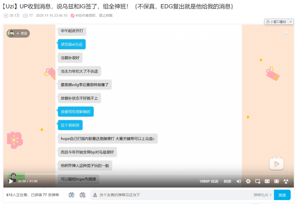 表示乌兹和IG签了意向合同