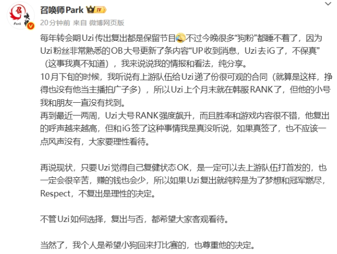搞得Uzi本人辟谣后