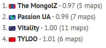 趣味数据:BLAST S2 rating榜及决赛对位数据