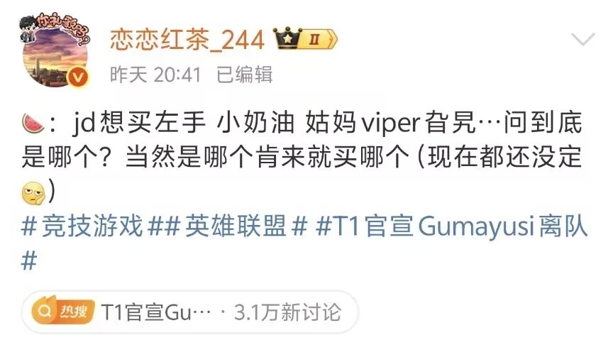ELK离队应该是真的,ON近日删除了,他和ELK的互动微博,同时ELK,也把“清者自清”那条删了,看来下路双人组,还是没有和解啊,放弃全华班,跟JDG抢Viper,明年BLG应该是最后一搏了,再拿不到冠军的话,这个班子铁定要散,但Viper来不来,还不确定,搞不好还会有变动的。