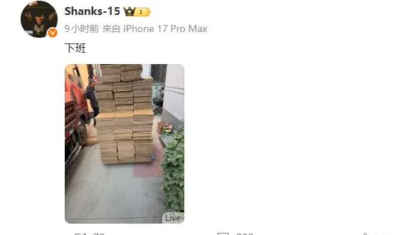 所谓的“活”并不是某种玩梗式的隐喻,而是实打实的搬箱子、扛货物的工厂劳动,四个小时后,他再次发动态:“下班了,活干完。”语气轻松得仿佛只是去体验了一趟全新的生活方式,虽然粉丝们第一反应是“Shanks不是缺钱吧?”,但其实稍微了解他的人都知道,他绝不会因为经济压力去从事这类兼职。