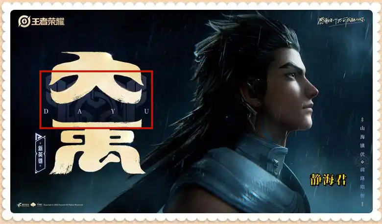 两张宣传海报中都有明显的鼎的标记,再加上大禹是以治水出名,所以我大胆猜测他的技能组应该和跟鼎和巨浪有关,之前和水相关的新英雄,在河道都有新形态(比如朵莉亚是河道变人鱼,澜是变鲨鱼),不知道大禹会不会也有类似的设定。