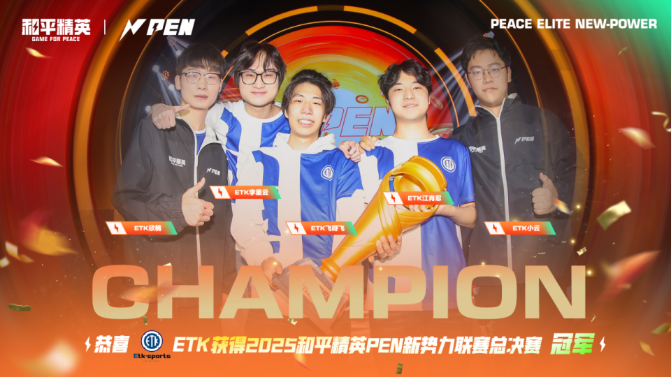 经过共计18局比赛的激烈角逐,最终,ETK战队凭借出色的团队执行力与稳定的赛场表现成功登顶夺得本届PEN总冠军,其从新锐力量到最终夺冠的历程,印证了其作为本届赛事黑马的强劲实力;SYG战队与DZT战队分获亚军与季军。MJ·晚吟则以其在整个总决赛中的出色表现,荣膺总决赛FMVP称号。