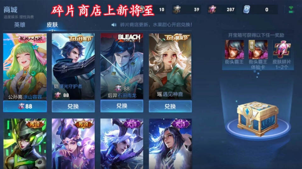 去年加入了沈梦溪的月圆寄思,而今年还不清楚是哪一款皮肤会加入皮肤碎片商城,建议大家提前备好88个皮肤碎片,到时候有新的史诗皮肤加入后,也可以第一时间兑换了。