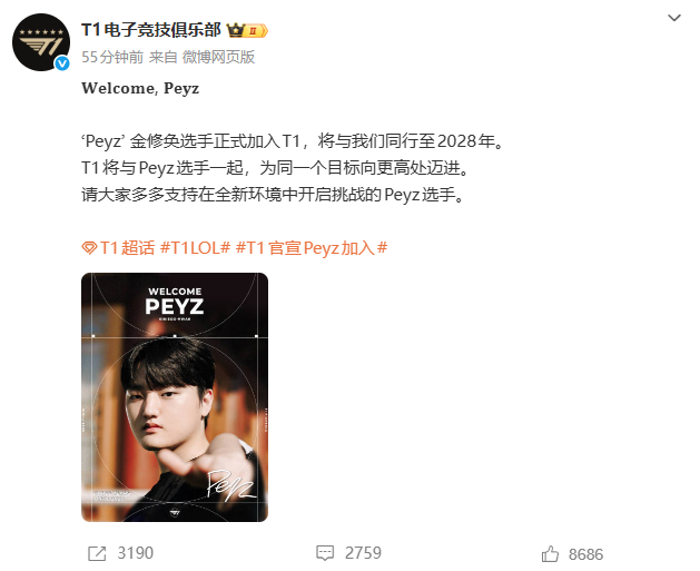 T1的新AD官宣,是在JDG效力一年的Peyz