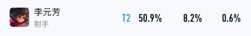 以上是李元芳目前的巅峰赛数据,出场率基本没变就算了,胜率还仅仅提升0.3%,远远达不到起飞该有的表现,甚至还有点“幽默”。