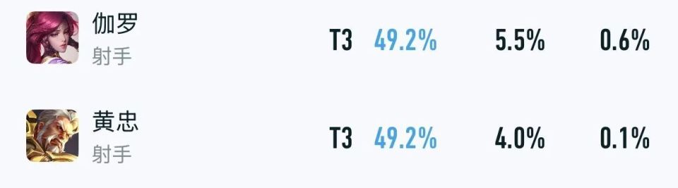 毕竟在艾琳这位T0超标怪被砍后,也让很多射手吃到了“达摩式加强”,胜率均有0.5%左右的涨幅,即便是伽罗和黄忠都有快要突破50%的胜率了。
