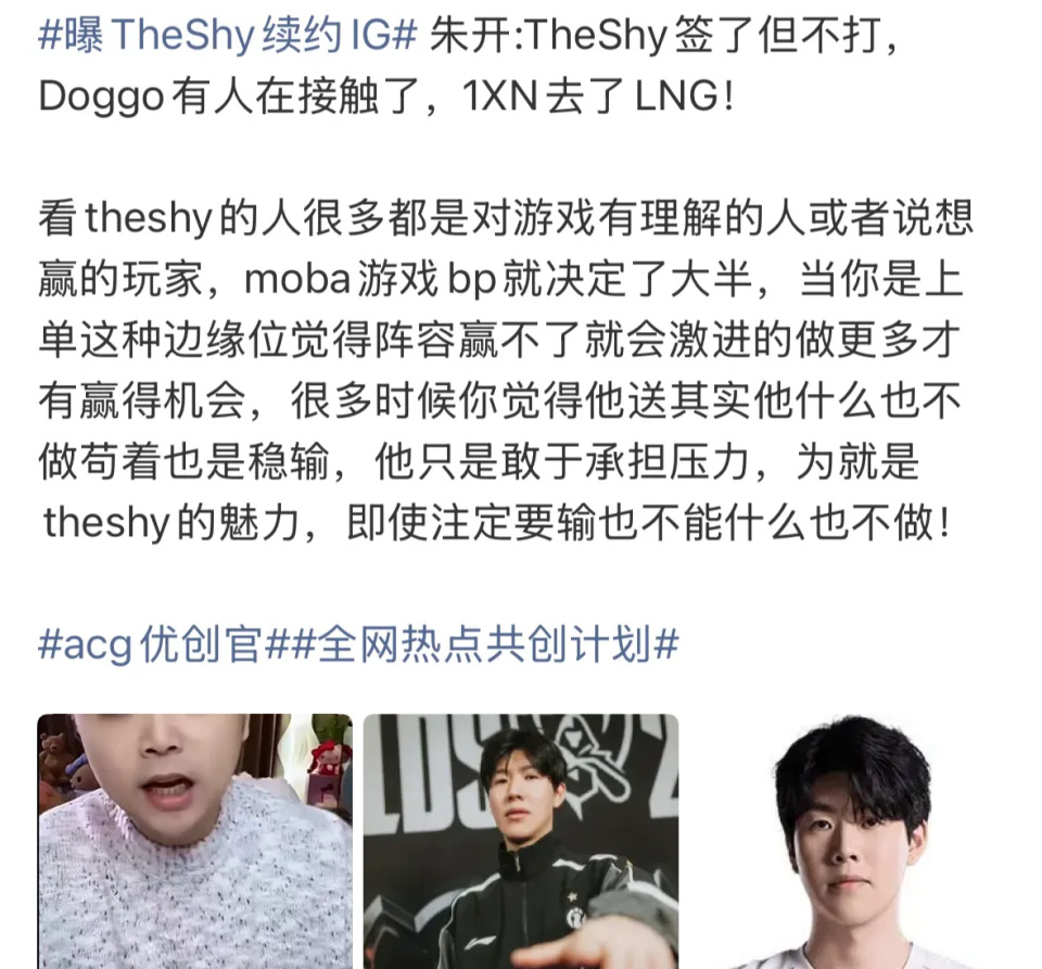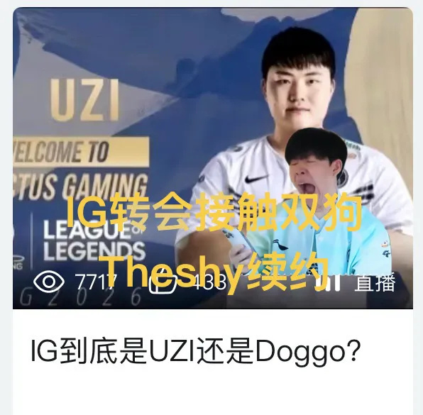 IG转会接触双狗,Theshy反转续约,UZI偷看超话