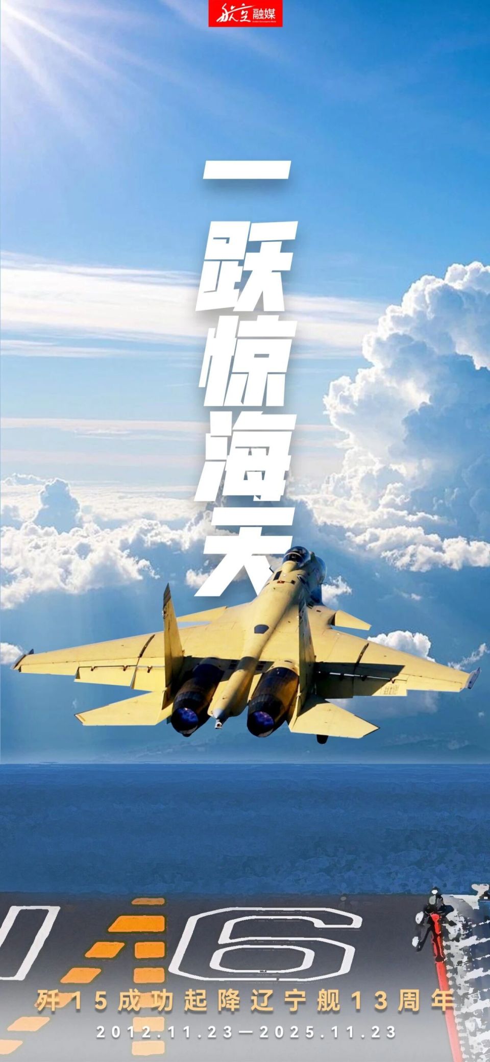 海风呼啸,战机轰鸣。歼15“飞鲨”,带着亿万人的期待,首次在辽宁舰上成功着舰并顺利完成舰上滑跃起飞。这一天标志着中国战斗机实现了从陆地向海洋的跨越。